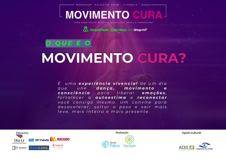 Mais do que um evento, o Movimento Cura é um encontro profundo consigo mesma. Ao longo de um dia de vivências, palestras e experiências corporais, as participantes são convidadas a sair do automático, escutar o próprio corpo e ressignificar emoções, padrões e histórias.